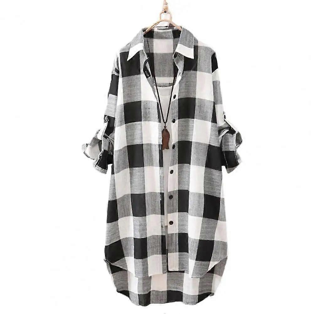 Women's Plaid Print Oversized Long Shirt, Contrast Color, Irregular Hem,