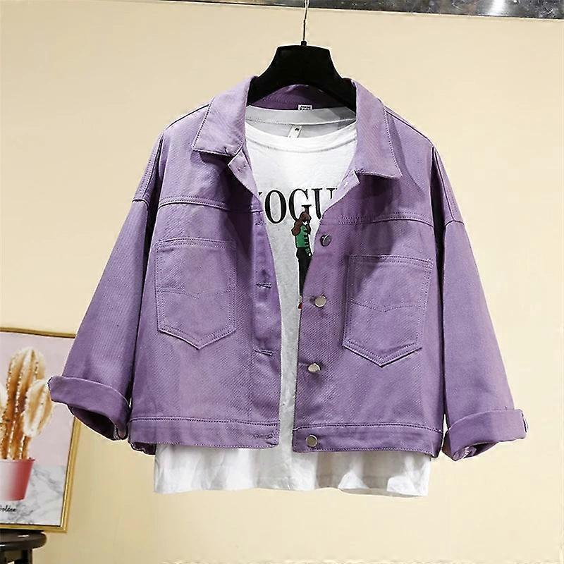 Women's Purple Denim Jacket Spring Autumn Single Breasted Long Sleeve Pockets