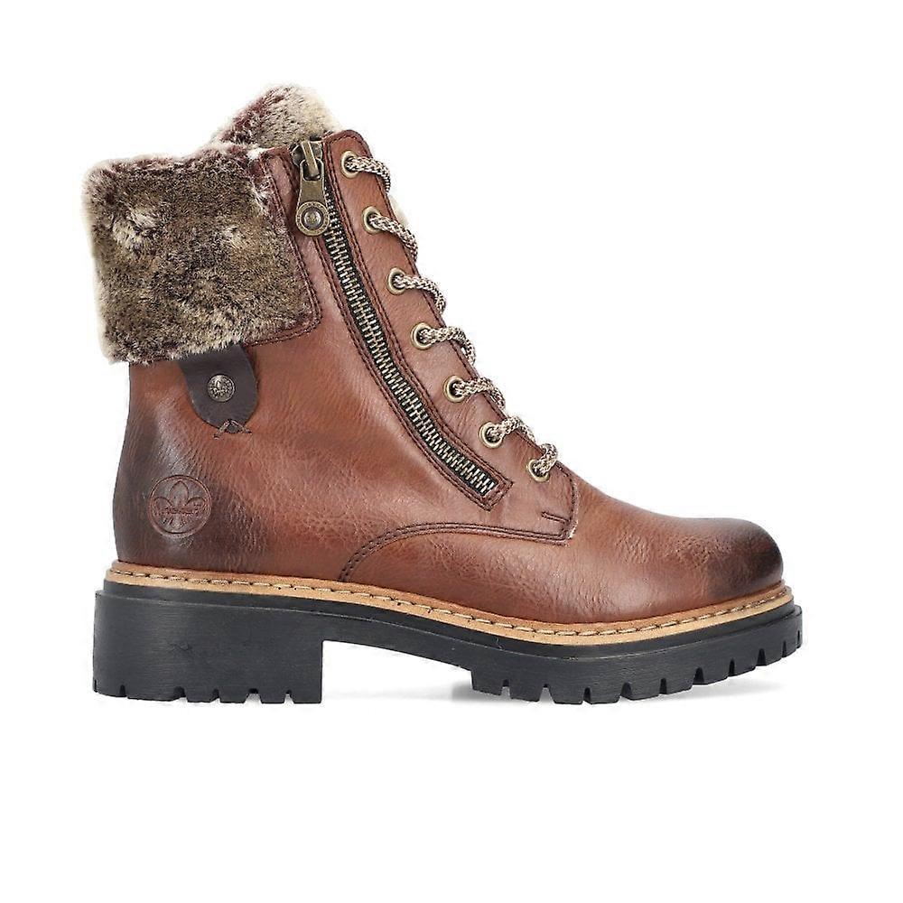 Women's Rieker 72608-24 | Brown Leather | Womens Casual Faux Fur Lined Zip-Up Boots