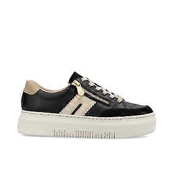 Women's Rieker M1912-00 | Black | Ladies Flatform Sole Lace/Zip Trainers