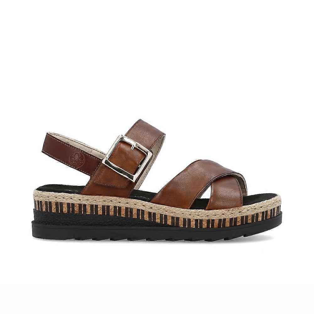 Women's Rieker V7951-24 | Peanut Brown Leather | Modern Womens Raffia Style Wedge Sandals