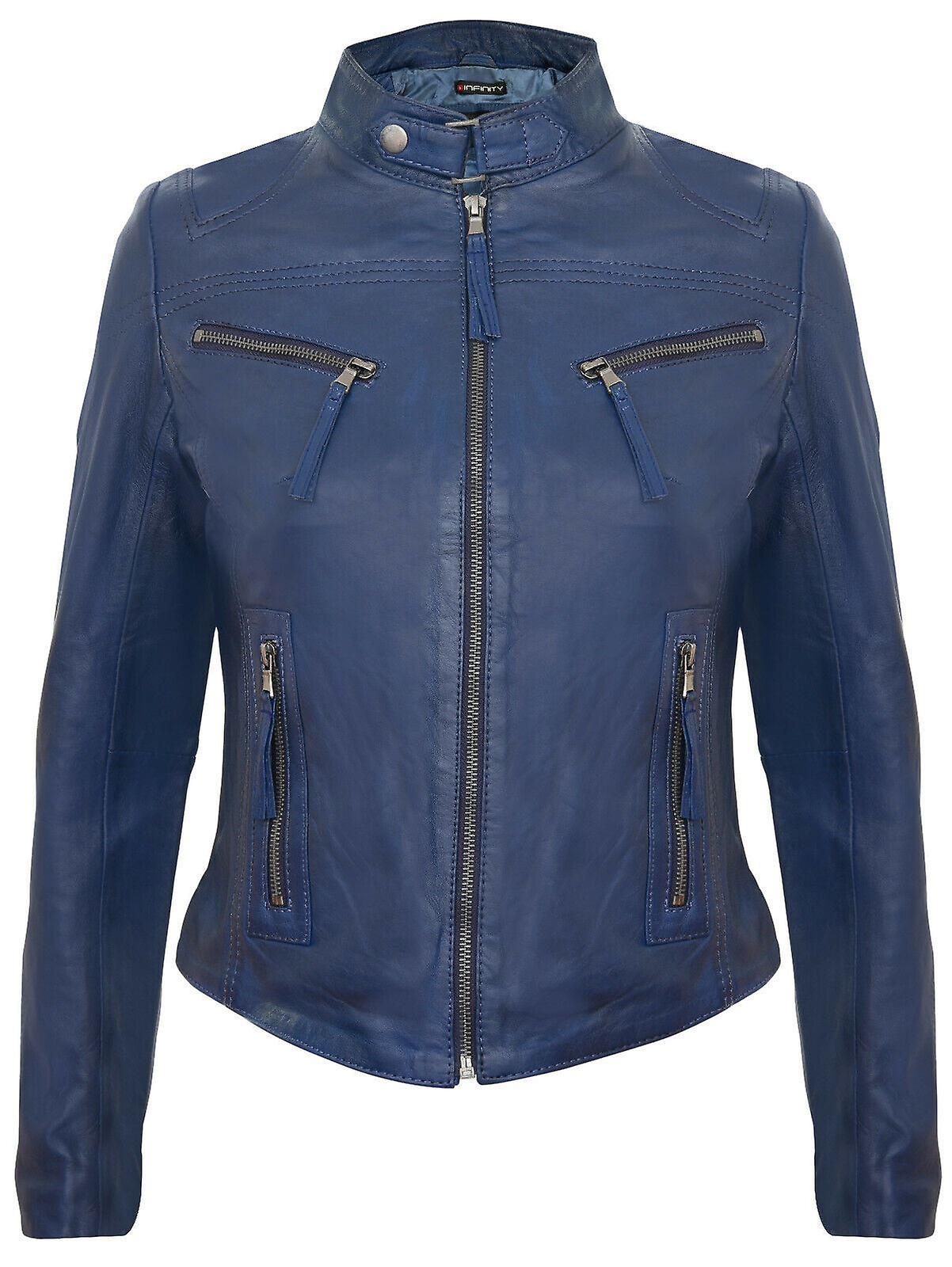 Women's Royal Blue Leather Biker Jacket
