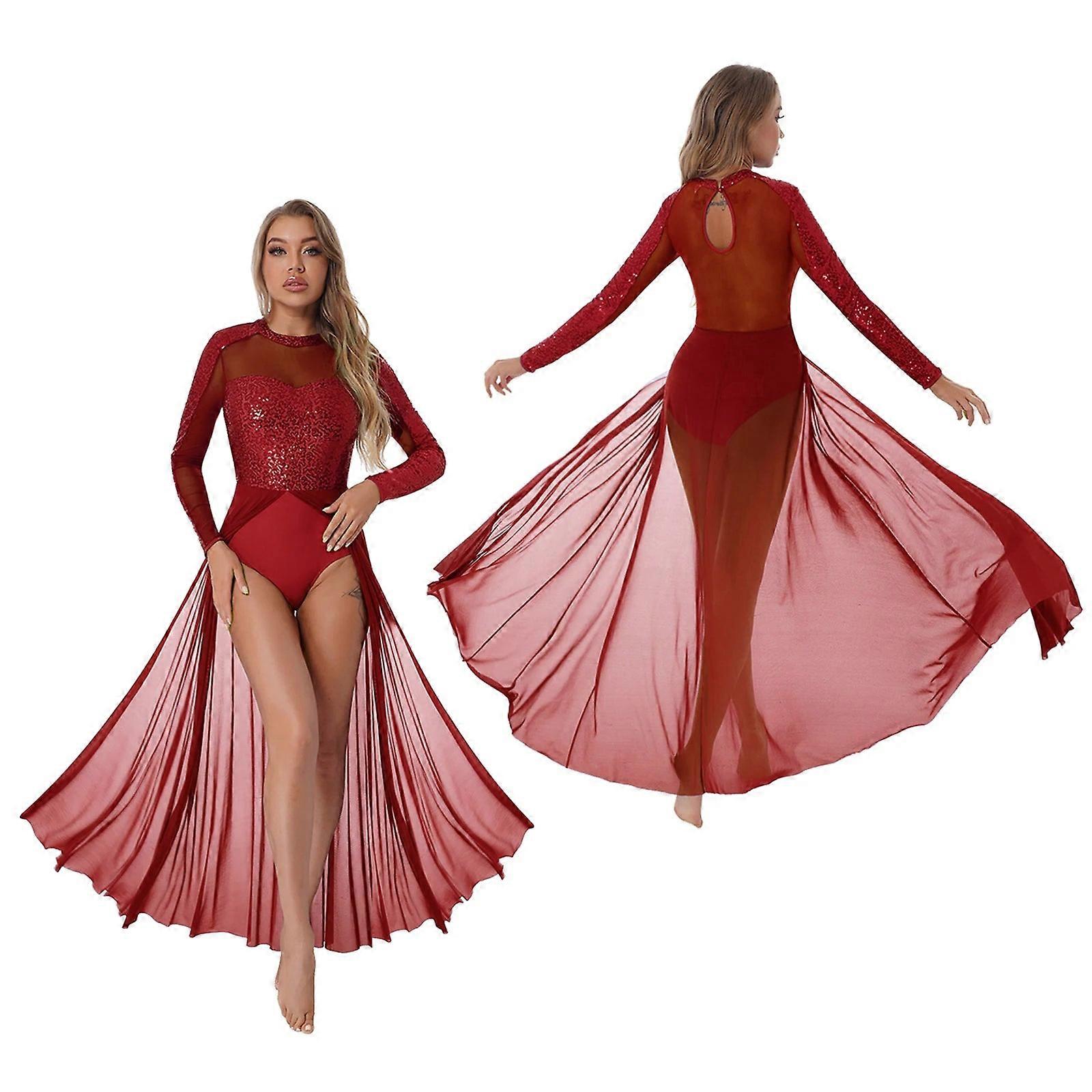 Women's Sequin Sheer Mesh Dance Leotard Ballet Gymnastics Costume Performance