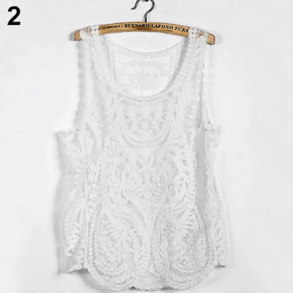 Women's Sexy Sleeveless Lace Embroidered Tank Top Floral Crochet Tee Shirt