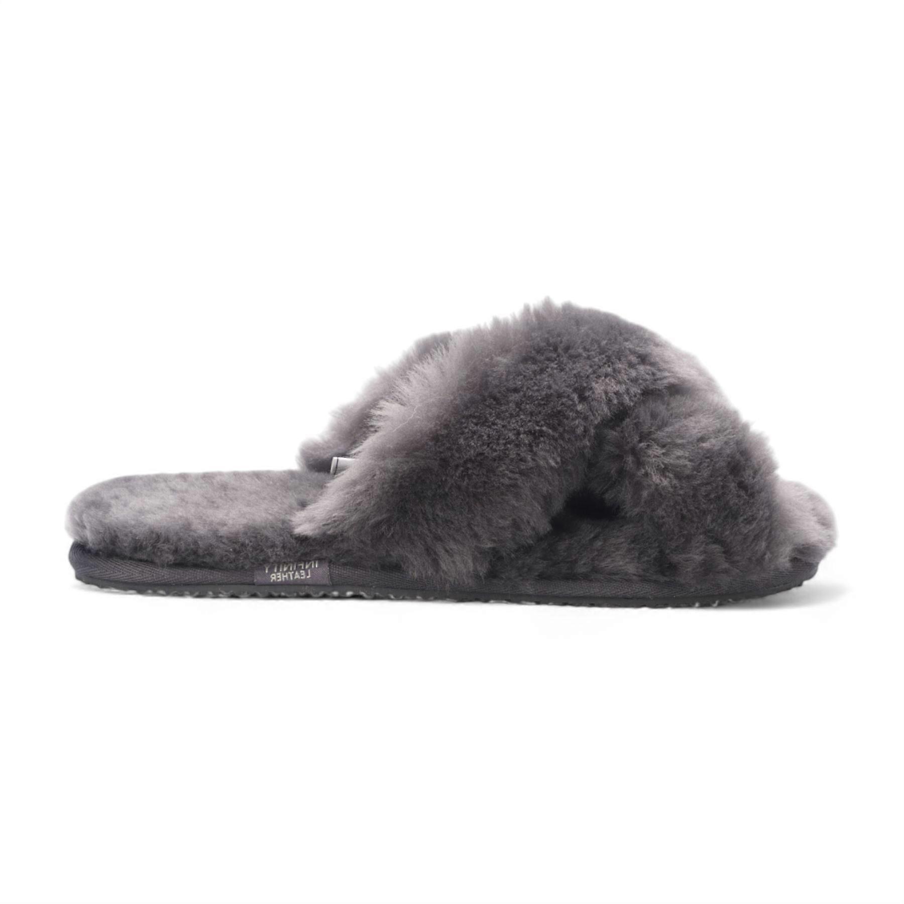 Women's Sheepskin Slippers Grey Slip-On Warm Winter Fur Crossover Non-Slip Comfort