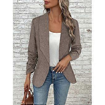 Women's Solid Color Draped Collar Ruched Long Sleeve Casual Office Blazer Jacket, Autumn