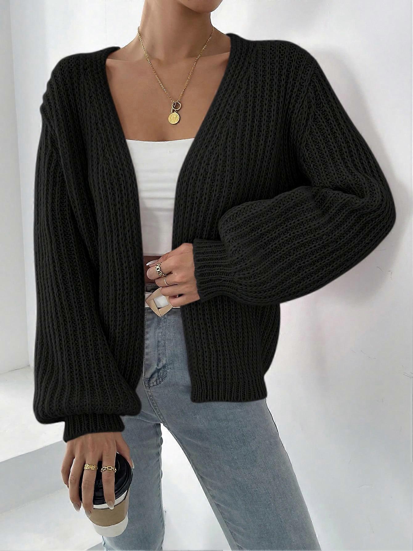 Women's Solid Color Drop Shoulder Long Sleeve Casual Loose Knit Cardigan, Autumn/Winter