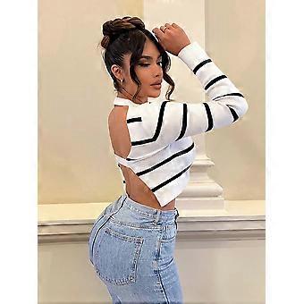 Women's Striped Pattern Backless Cropped Long Sleeve Sweater In Fall/Winter