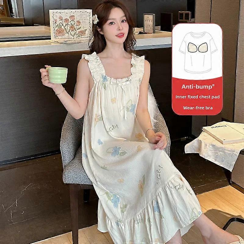 Women's Summer Cloud Cotton Nightgown With Chest Pad - Loose Fit, Sweet Fairy