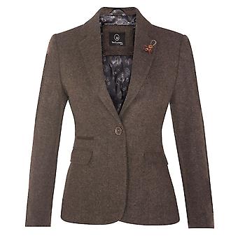 Womens Tweed 1920s Harringbone Brown Blazer - Layton