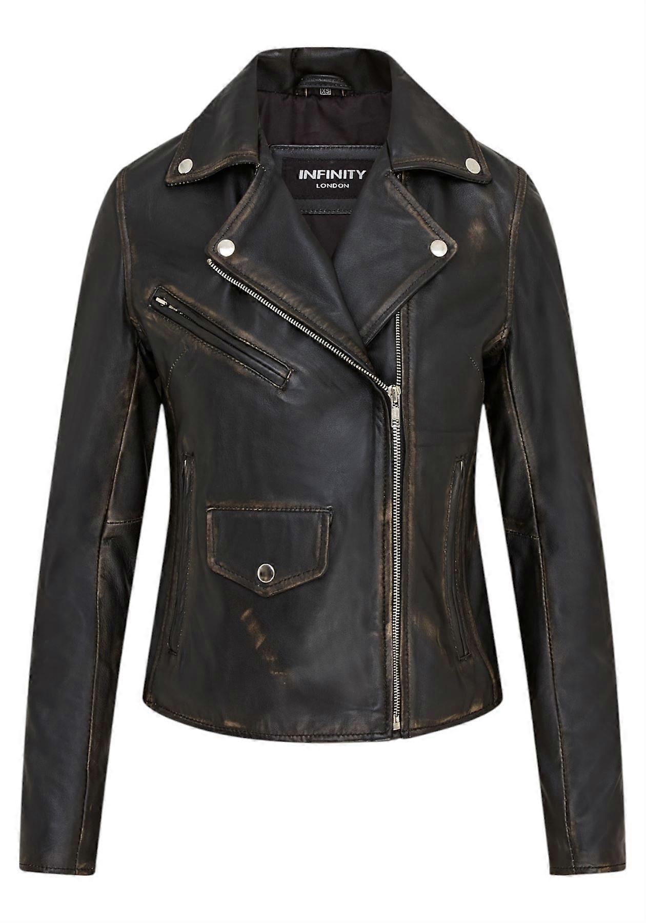 Womens Vintage Black Leather Biker Jacket Classic Brando Moto Real Leather Ladies Jacket