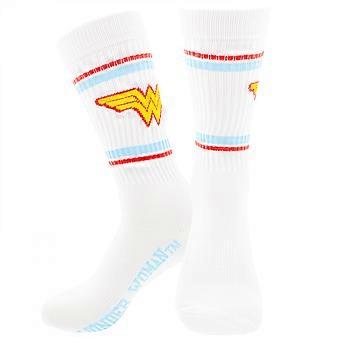 Wonder Woman Blue and Red Striped Athletic Crew Socks