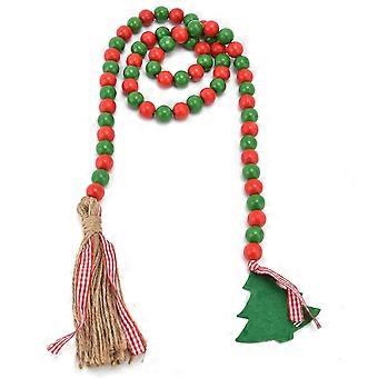 Wood Bead Garland Christmas Tree Tassel Wooden Bead Ornaments for Home Festival Decoration(Red Green )