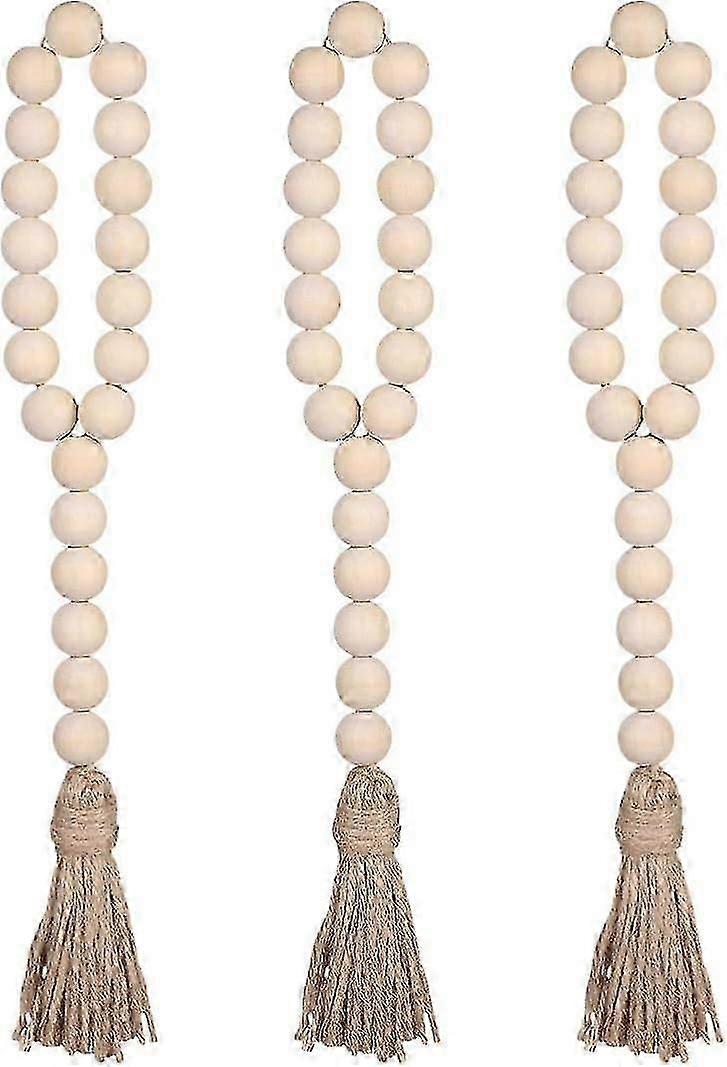 Wood Bead Garland,farmhouse Tassels Beads, Rustic Country Decor Prayer Beads For Home Door Knob Christmas Decoration
