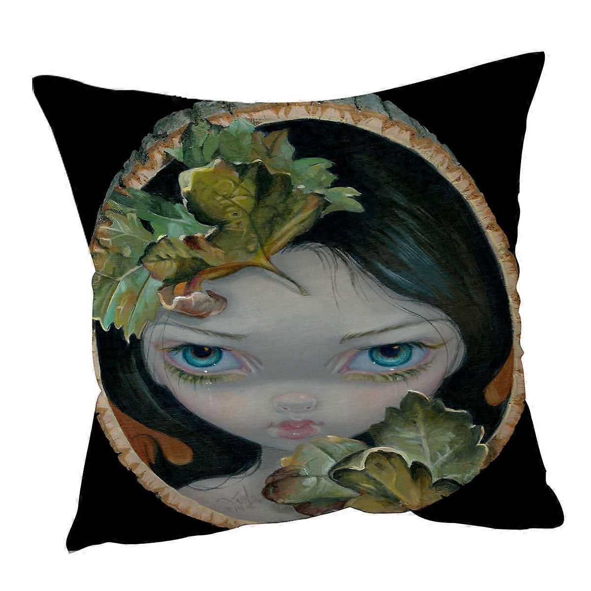 Wood Sprite with Leaves Painted on Wooden Log Cushion Cover