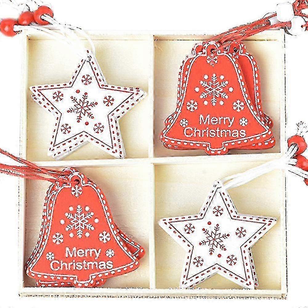 Wooden Christmas Farmhouse Rustic Ornaments, Wooden Hanging Ornaments Set For Christmas Tree Decorations