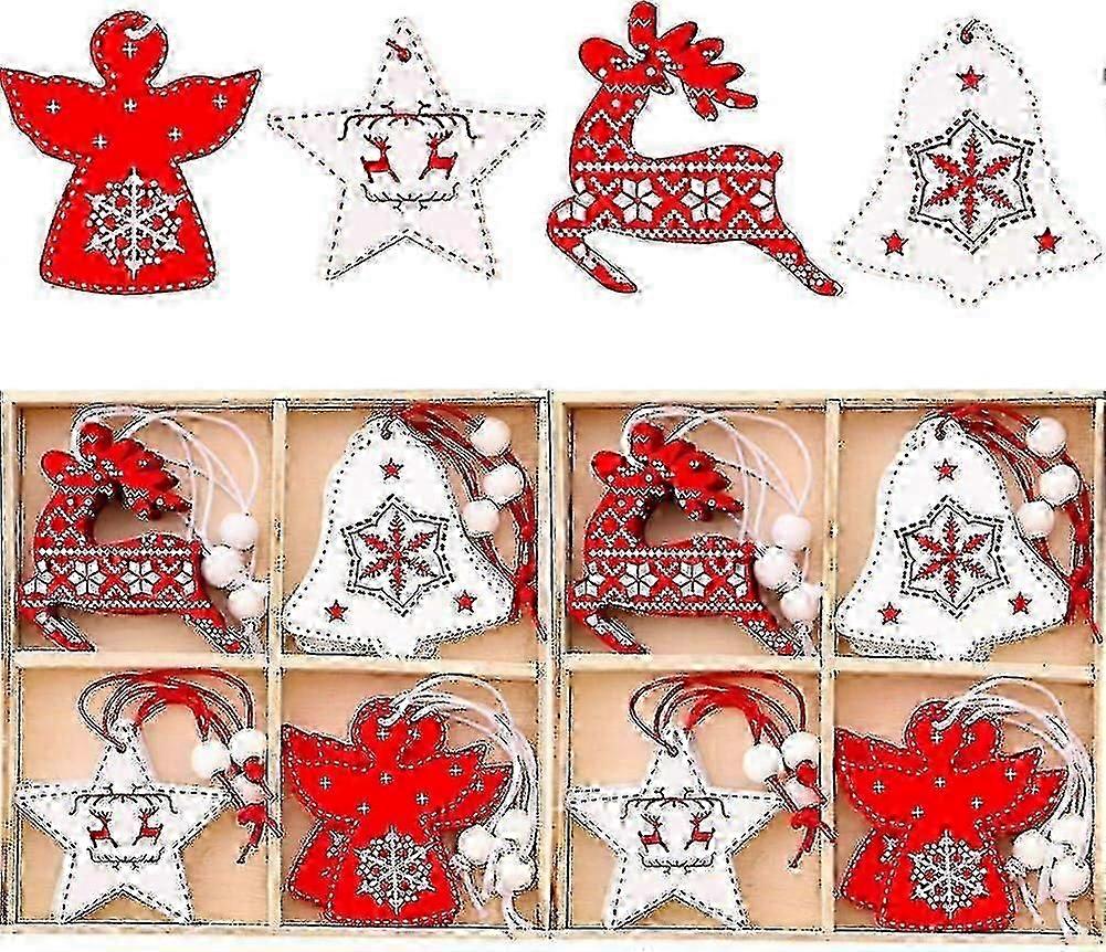 Wooden Christmas Pendants - Set Of 24 Christmas Tree Ornaments For Festive Decoration BJT30
