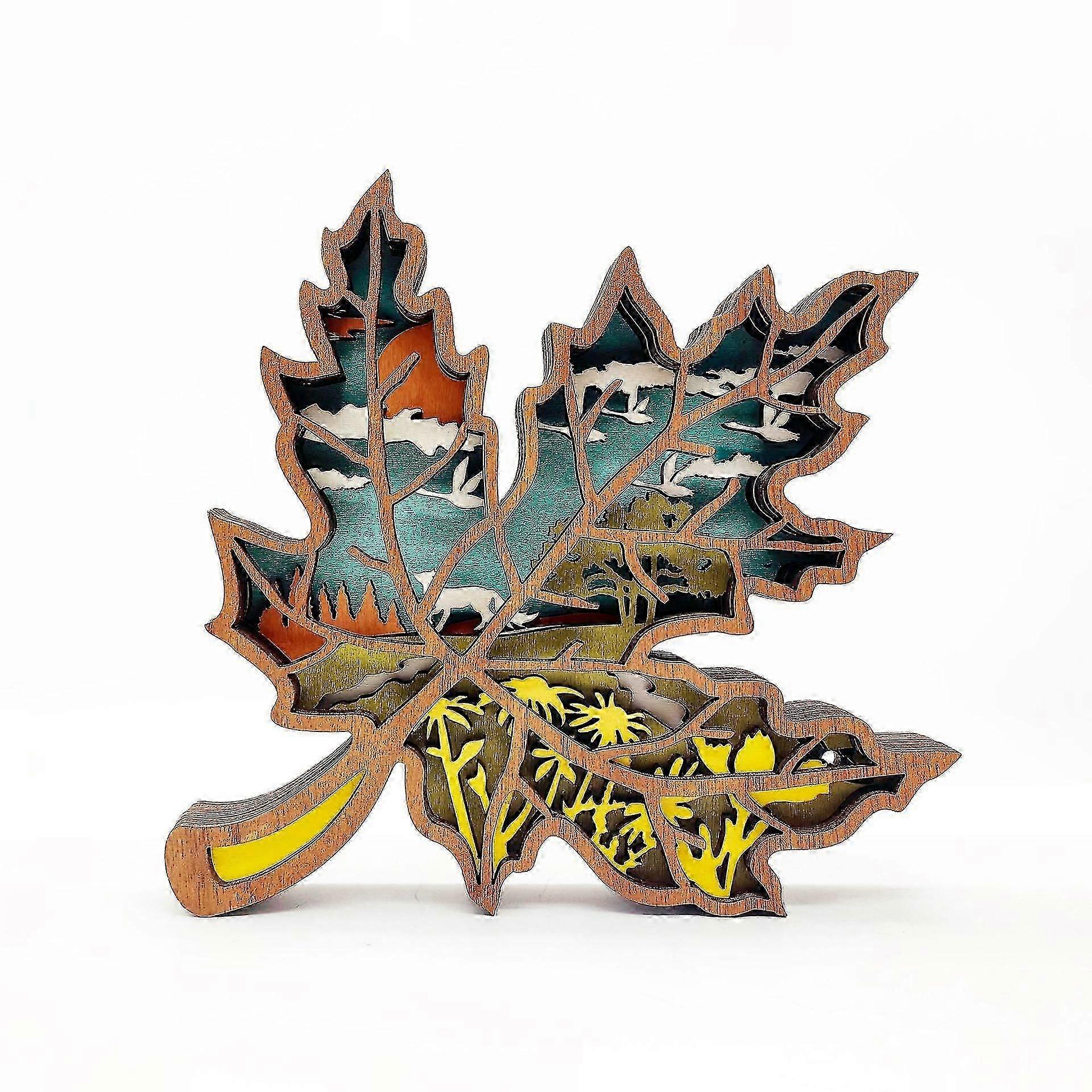 Wooden Family Party Maple Leaves Cutout Wood Slices Wood Pieces Crafts Designed Decor Crafting Ornament Decoration_Gift Of G