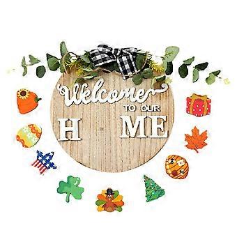 Wooden Guest Welcome Sign Front Door Wood Round Hanging Sign Guest Welcome Sign + Seasonal Small Porch Signs Farmhouse Front Door Door Decor