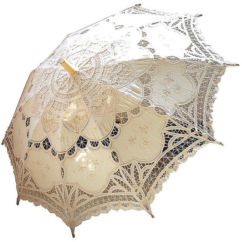 Wooden Handle Embroidery Lace Bridal Umbrella