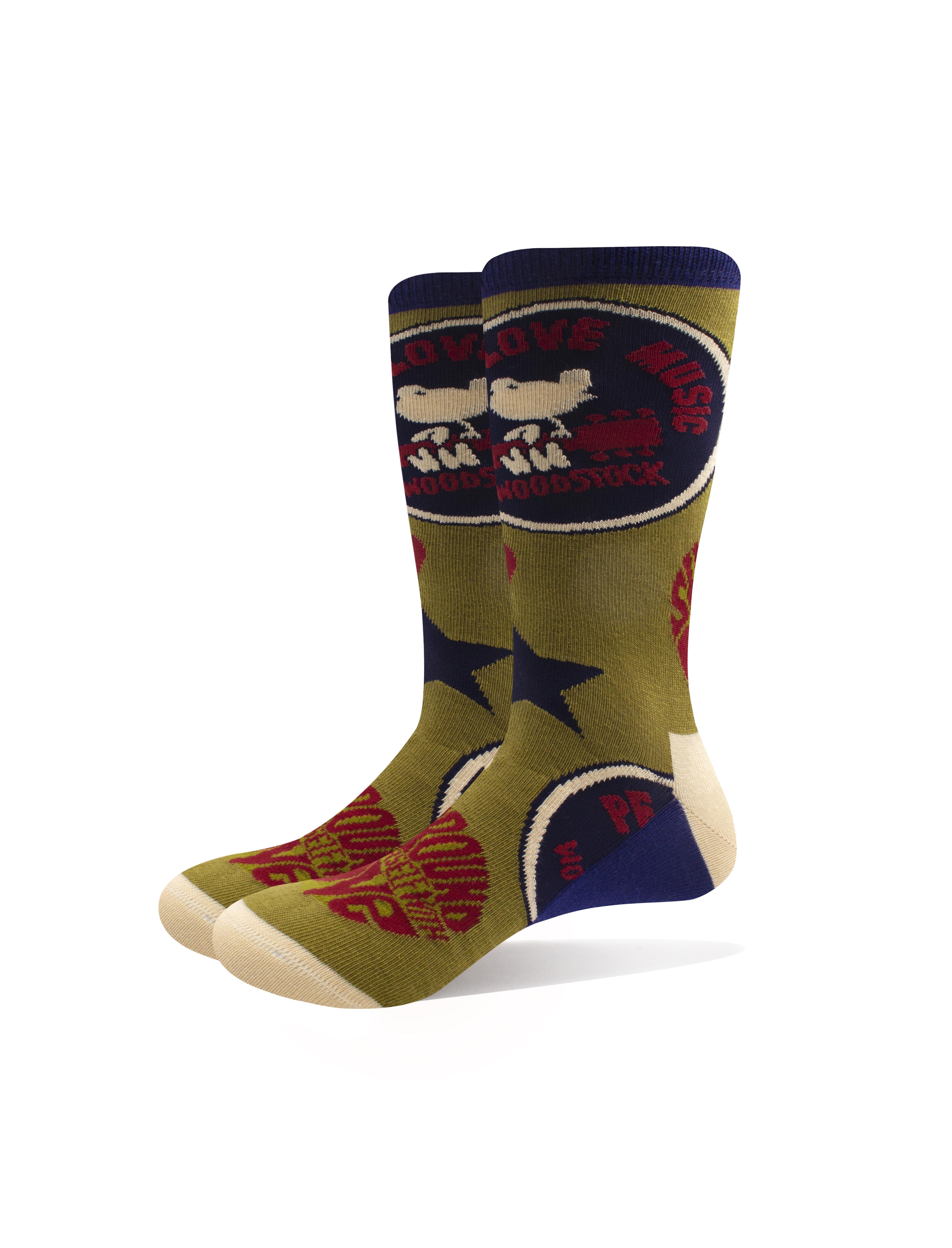Woodstock Peace Love Music Socks