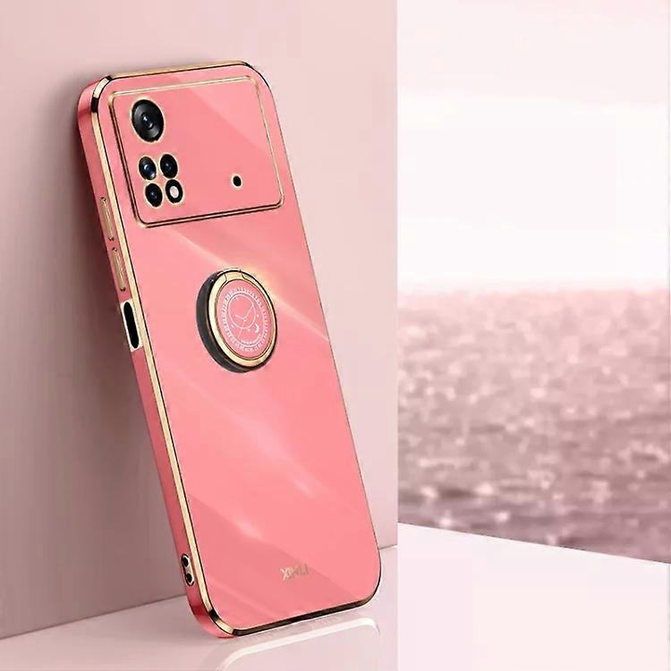 Xiaomi Poco X4 Pro 5G Case-6D Electroplate TPU with Ring Holder-Hawthorn Red Hawthorn Red