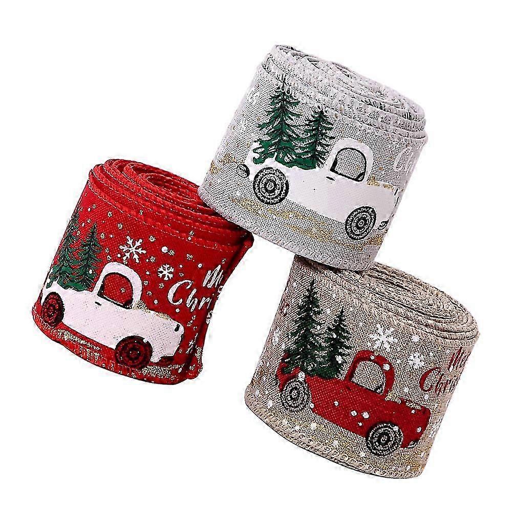 Xmas Ribbon Silk Ribbon for Decor 3 Rolls Cartoon Christmas Gift Ribbons