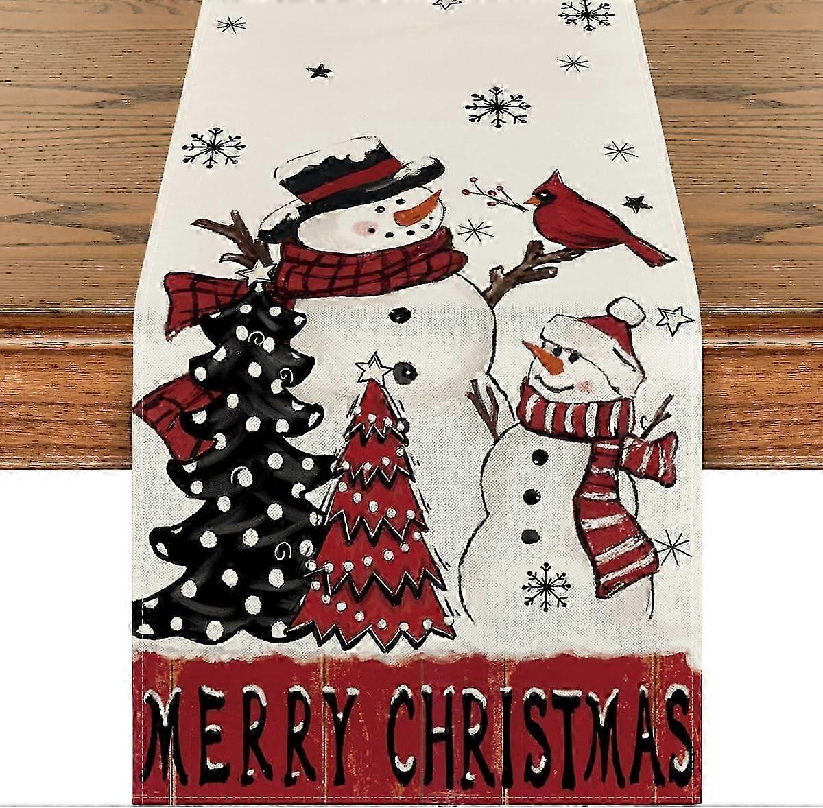 Xmas Tree Snowman Bird Merry Christmas Table Runner, Seasonal Winter Kitchen Dining Table Decoration 13x36 Inch