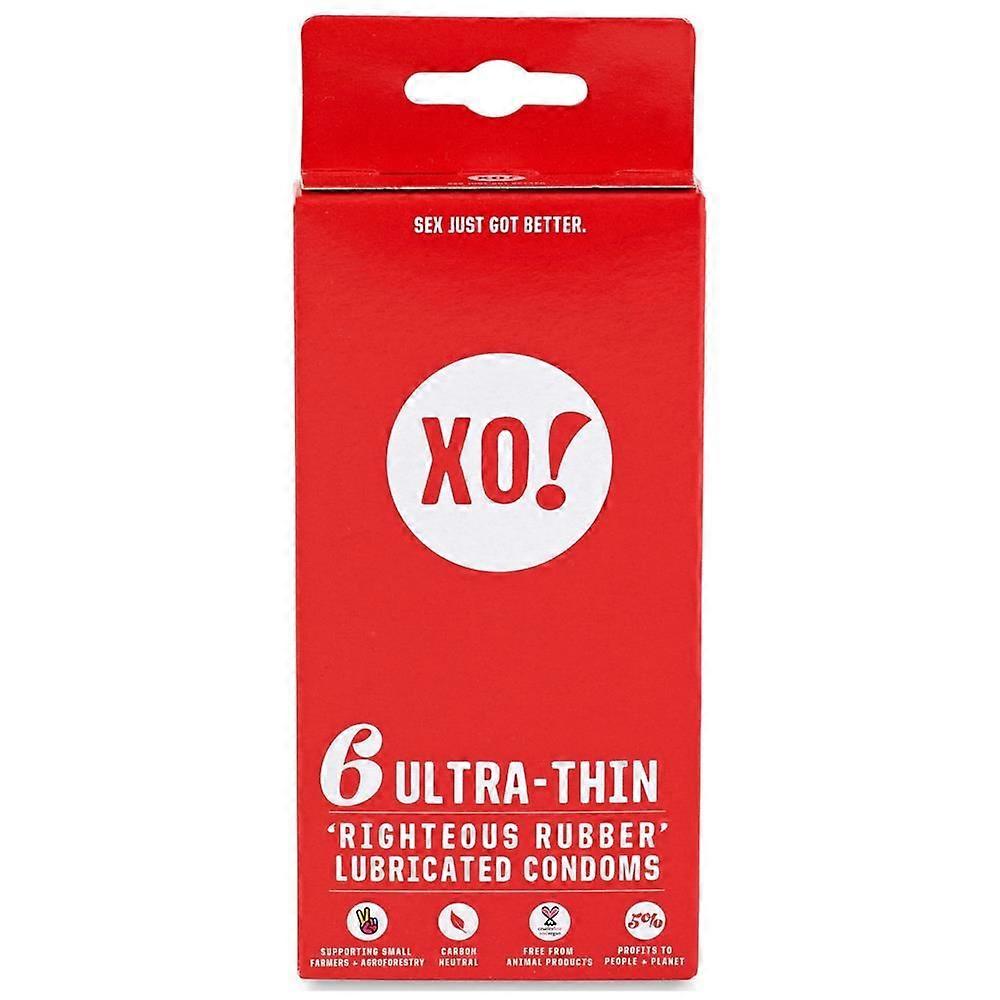 6 ultra-thin CO2-neutral vegan natural latex condoms. Crafted from plant-based Fair Agroforestry Latex, these condoms combine sustainability with superior sensitivity, ensuring a natural feel while prioritizing environmental responsibility. Each condom is ultra-thin and lubricated to enhance comfort and pleasure, allowing for heightened sensation without compromising safety. Rigorously triple electronically tested, they guarantee reliable protection for peace of mind during intimate moments. These condoms are 100% free from parabens, nitrosamines, and glycerin, making them suitable for sensitive skin and reducing the risk of irritation. Certified by PETA as vegan and cruelty-free, they align with ethical values and conscious consumerism. Ideal for individuals and couples seeking an eco-friendly, high-quality alternative to conventional condoms, these natural latex condoms support a responsible lifestyle without sacrificing performance or safety. Ultra-thin design for enhanced sensitivity CO2-neutral production supporting environmental sustainability Made from plant-based Fair Agroforestry Latex Lubricated for added comfort Free from parabens, nitrosamines, and glycerin PETA-certified vegan and cruelty-free Triple electronically tested for superior safety Whether for everyday use or special occasions, XO