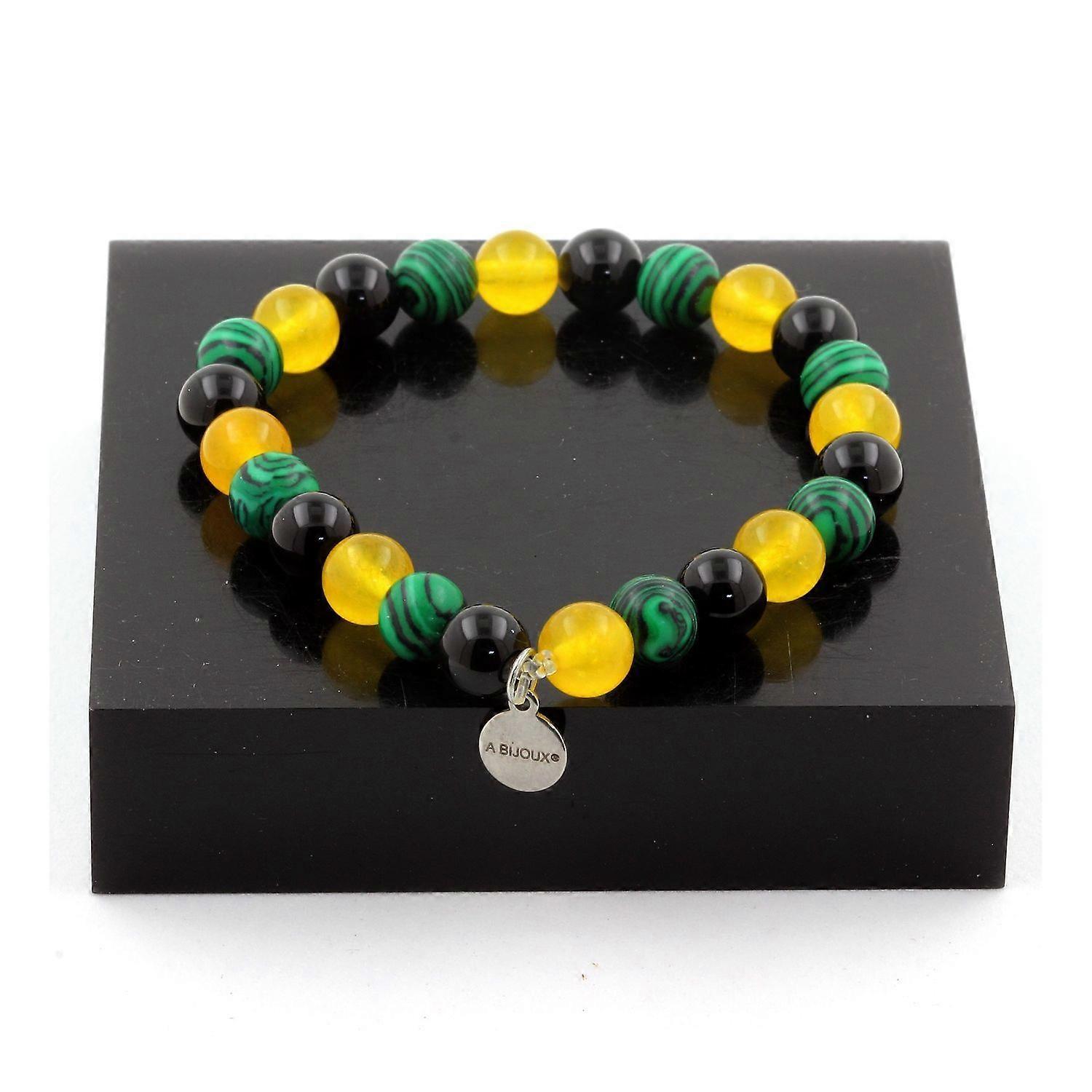 Yellow Agate + Malachite + Black Agate Beads Bracelet 8 mm