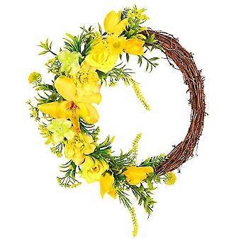 Yellow Flower Door Wreath Artificial Handcrafted Wreath Spring Front Door Decor Seasonal Door for Ma