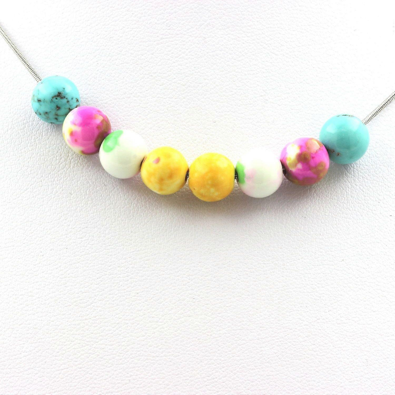 Yellow pink jasper + turquoise + green pink jasper + purple yellow jasper beaded necklace 8 mm
