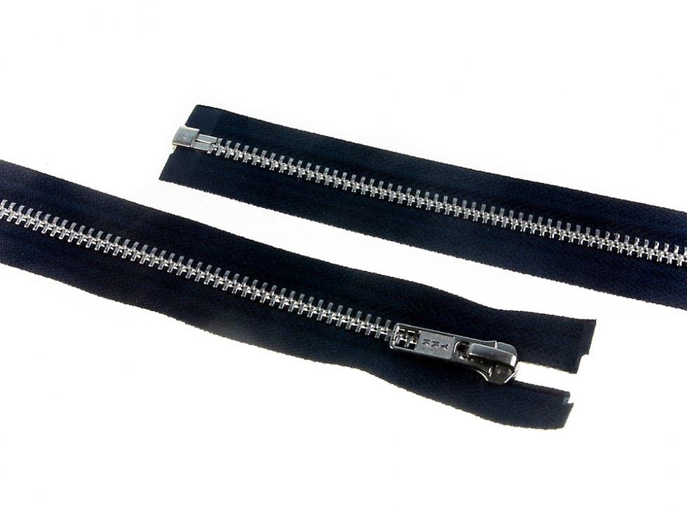 YKK Silver Metal Open End Zips Navy Blue - 30 cm - each