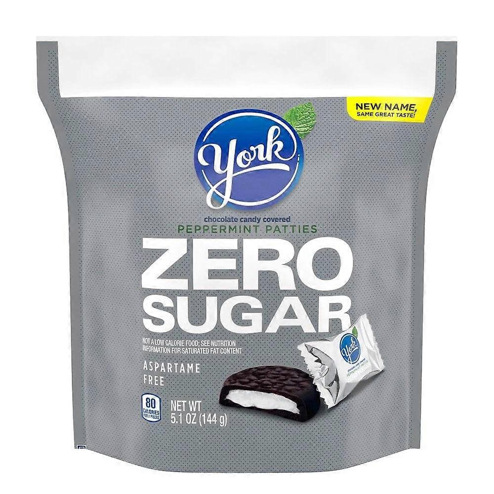 Wrap your favorite cookie dough around the chocolate peppermint candy, bake in the oven, then experience a minty fresh cookie created by yours truly. You can also hand out scrumptious YORK Zero Sugar Peppermint Patties dark chocolate candies during the holidays like in Easter baskets, Christmas stockings, Halloween candy bowls and Valentine's Day gift bags. These minty delights covered in dark chocolate are gluten-free and kosher with zero sugar for those who love a refreshing but rich snack. Sugar Free Candy: Contains one (1) 5.1-ounce pouch of YORK Zero Sugar Peppermint Patties Dark Chocolate Candy Dark chocolate peppermint candies are a minty and rich treat during a movie marathon, while you're at work or after a delicious meal Gluten-free, zero-sugar and kosher dark chocolate covered YORK Peppermint Pattie sweets individually wrapped Keep birthday parties, baby showers, wedding receptions and graduation events fun and minty with YORK Zero Sugar Peppermint Patties Cool peppermint coated in rich dark chocolate with zero sugar to refresh your taste buds Wrap your favorite cookie dough around the bite-size, zero-sugar chocolate candy for a unique and savory baking technique
