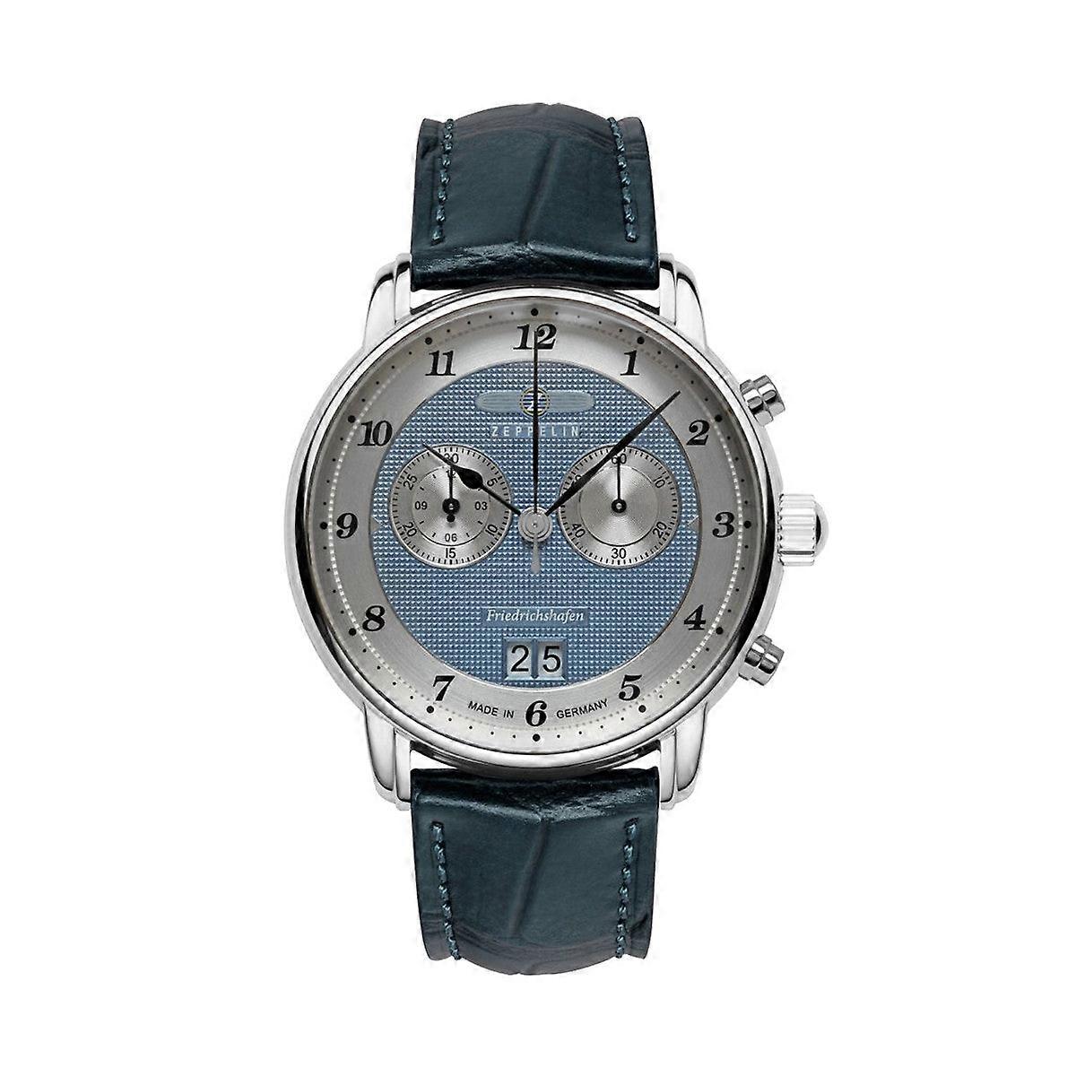 Zeppelin Friedrichshafen Chronograph 8584-3 Men's Watch - Blue Dial, Blue Leather Strap