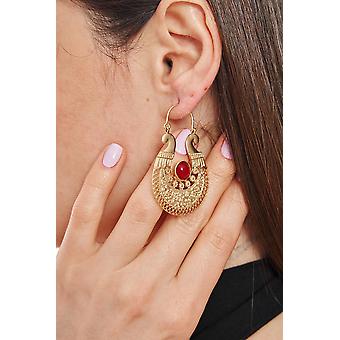 ZeyDor Gold Burgundy Stone Bohemian Earrings 2095