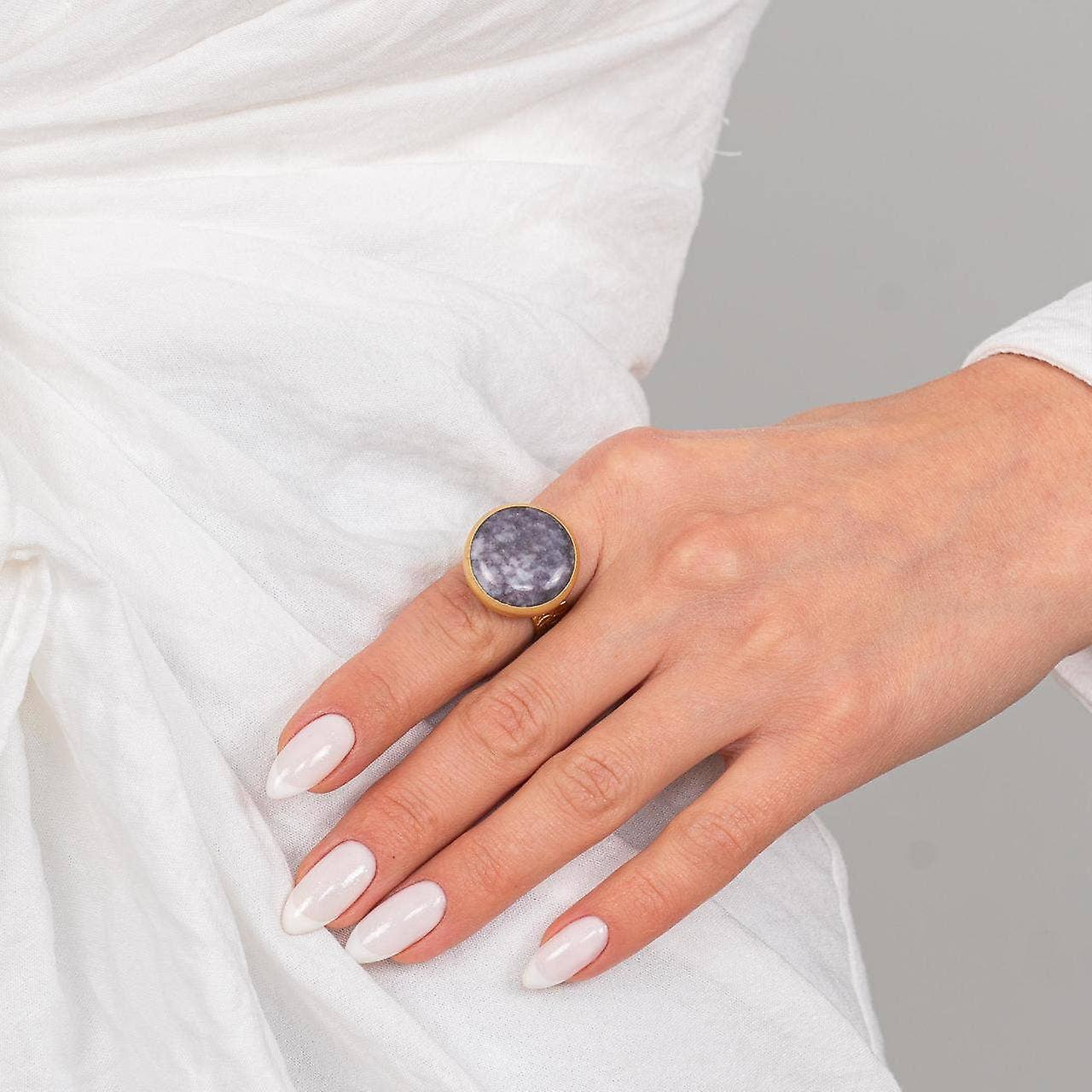 ZeyDor Gray Quartz Stone Natural Stone Ring 1530