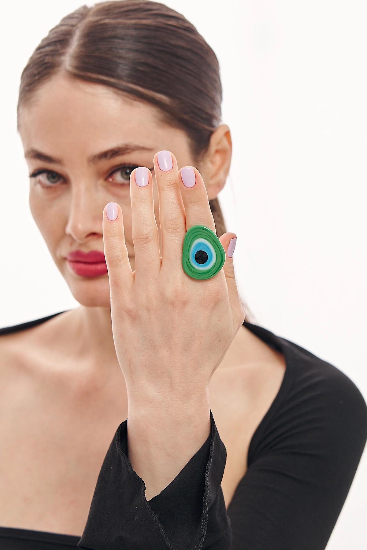 ZeyDor Green Glass Evil Eye Ring