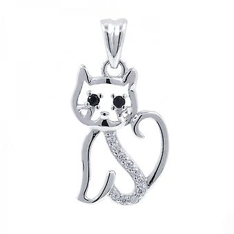 Zircons And 925 Sterling Silver Cat Pendant awo18