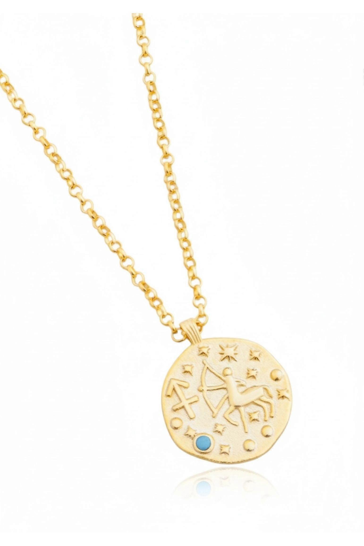 Zodiac Birthstone Talisman Necklace Sagittarius Gold