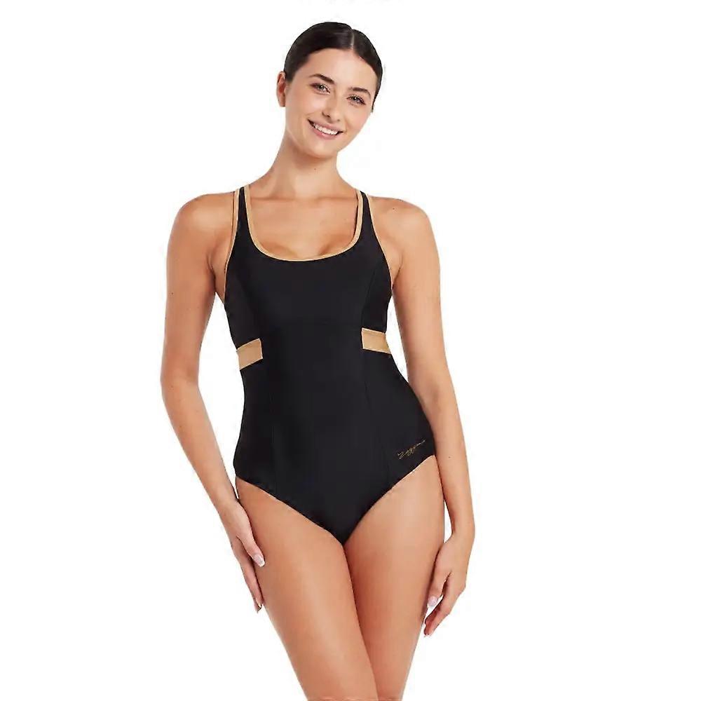 Zoggs Dakota Crossback Swimsuit - Black/Gold
