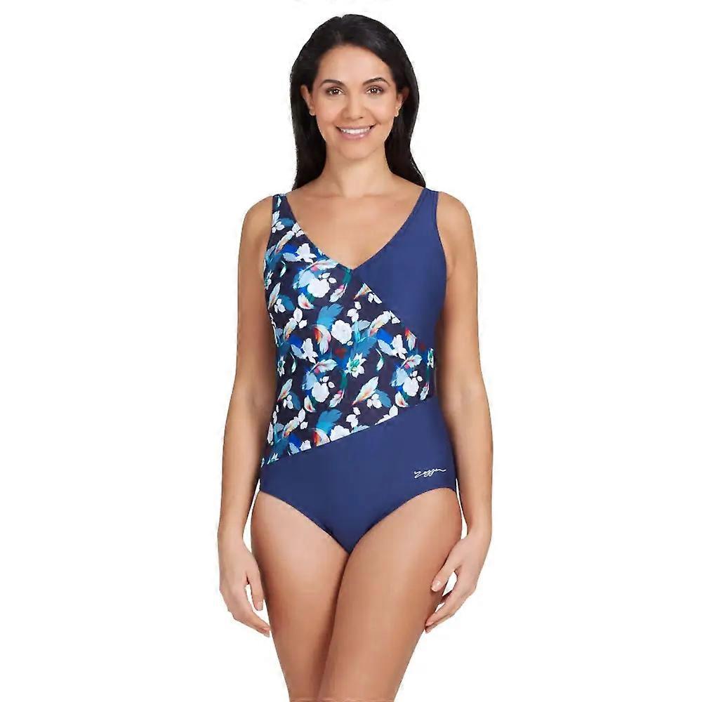 Zoggs Luxor Front Crossover V Back Swimsuit - Navy