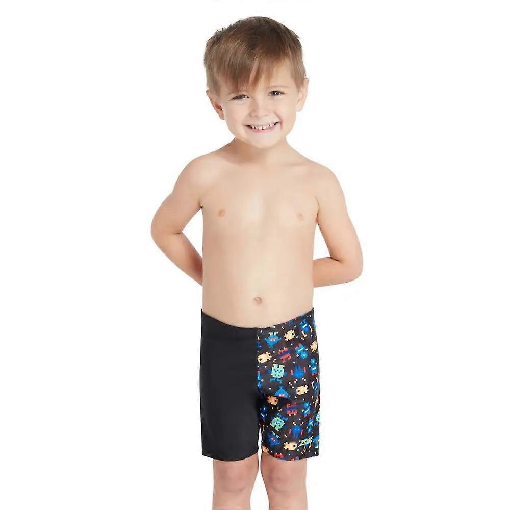 Zoggs Tots Boys Pixel Monsters Mid Swim Jammer - Black/Multi