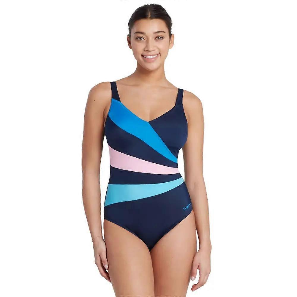 Zoggs Wrap Panel Classicback Swimsuit - Navy/Blue/Pink