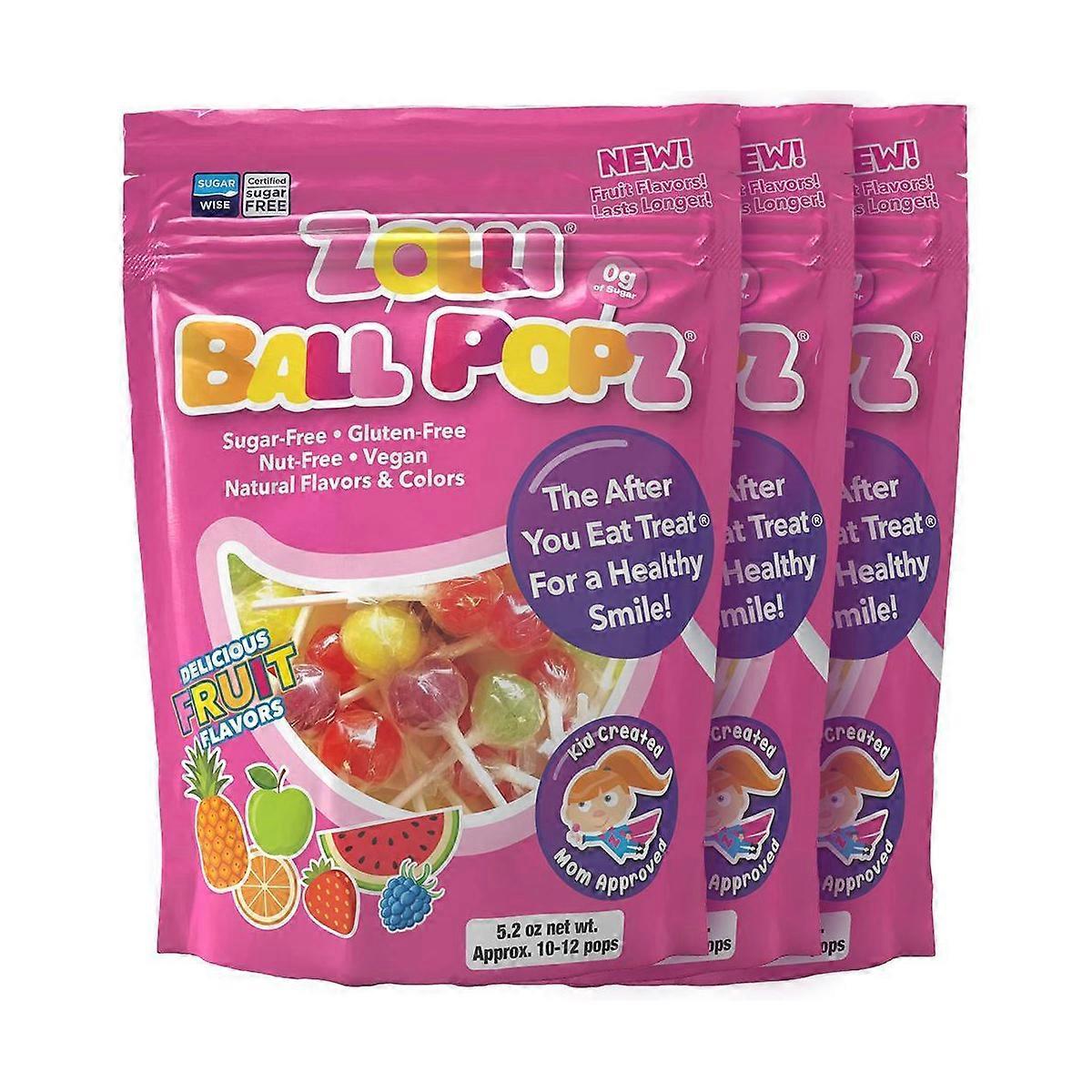 Zolli Ball Popz Clean Teeth Sugar Free Lollipops, Assorted Natural Fruit, 5.2oz 3-pack