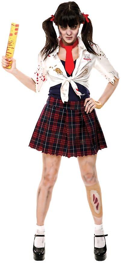 This School Girl Won'T Give Herself Offense Surely Zombie School Girl Adult Costume Includes Dress, Shirt, Neck Tie, Leg Scar, Hand Scar, Bloody Ruler And Makeup. Perfect Halloween Costume