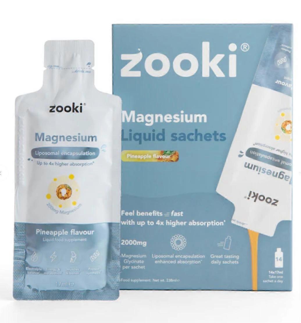 Zooki Liposomal Magnesium Bisglycinate 2000mg, Pineapple Flavour - 14x17ml Liquid Sachets